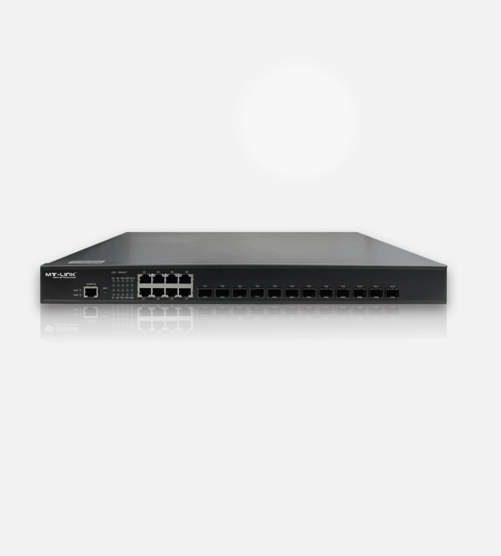 MT-LINK MT-SG5612 is a new generation of aggregation 10GE switch introduced by Shanghai Baud Data Communication Co., LTD. It is targeted at the IP MAN (metropolitan area network), campus networks and enterprise networks. It is developed on the basis of high performance hardware and BDROS - a software platform with MT-LINK own independent intellectual property rights. It supports multiple services like IPv6, MPLS, VPN and network security based on L2/L3/L4 wire-speed switching service. It also supports nonstop upgrade, continuous forwarding, graceful restarting and redundancy protection.